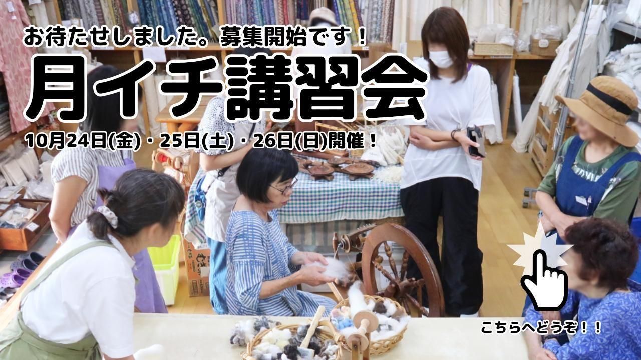 10月の月イチ講習会!募集開始!【全てキャンセル待ちになりました】 お待たせしました。10月の月イチ講習会、募集開始です。日程は10月24日(金)・25日(土)・26日(日)の3日間。1日のみの参加も可能です。詳しくはこちら