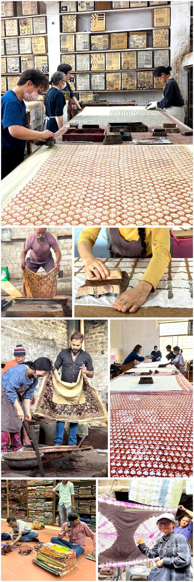 バグルーという木版更紗で有名な村で染め屋の工房を3日借り切って、そこの職人たちの手助けで更紗染めをします。参加者は自分の家のテーブルクロスやベッドカバー、カーテンなど、作りたい物のサイズを測って行きましょう。手の速い人でベッドカバー4〜5枚は作れます。また、木綿の衣類なども、木版でプリント出来ますのでぜひ持って行きましょう。