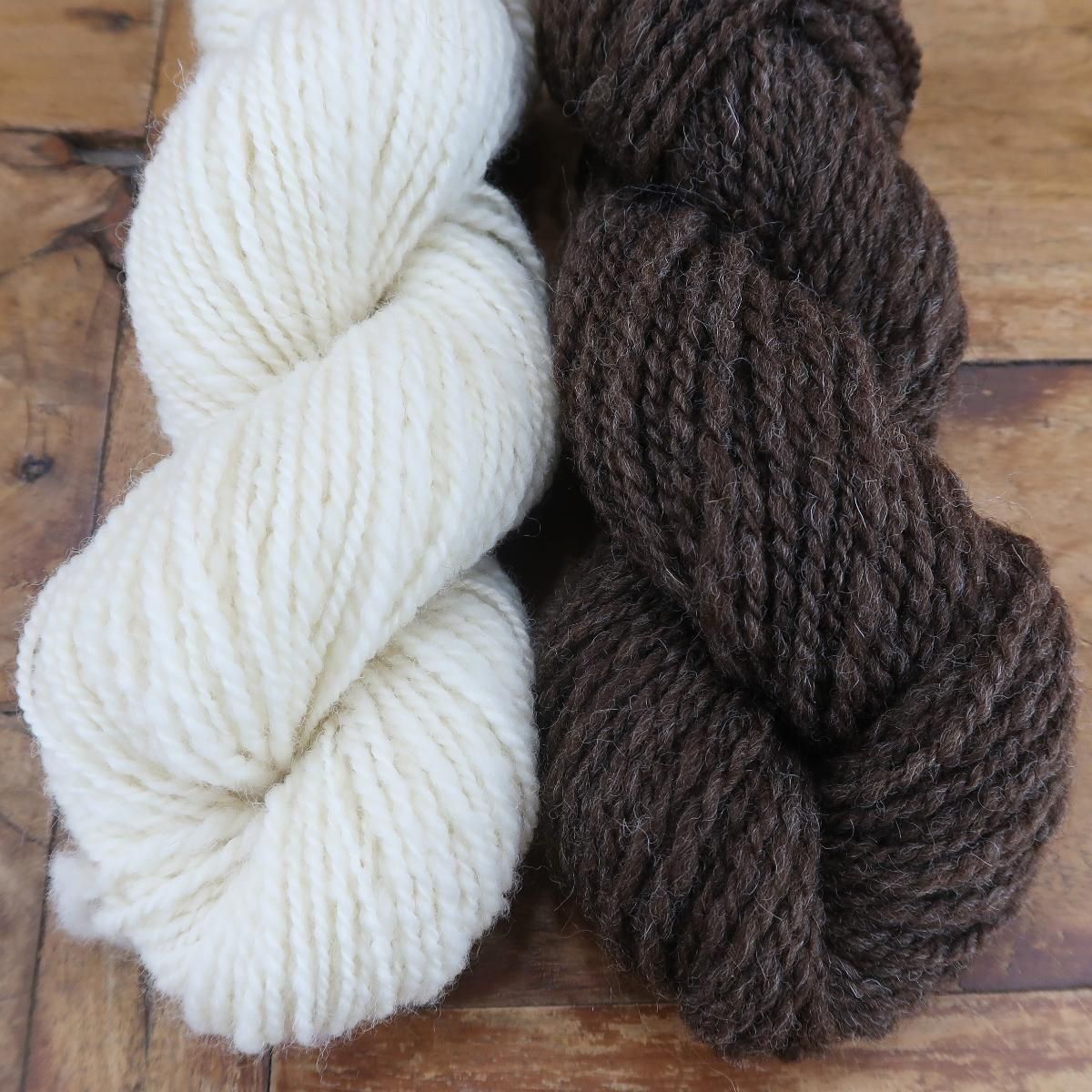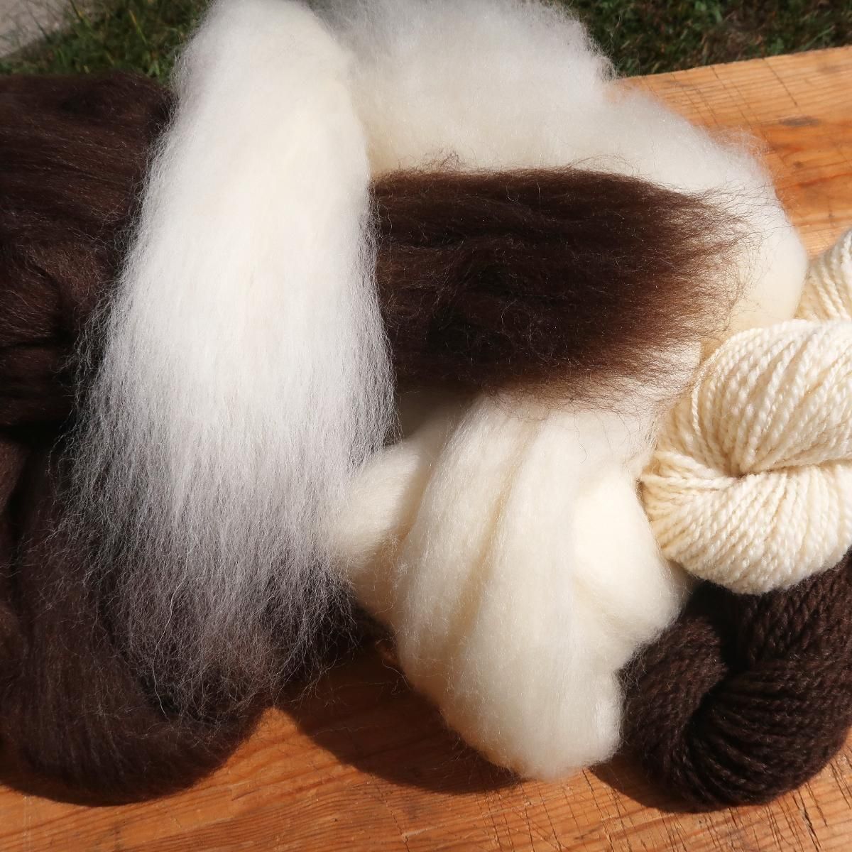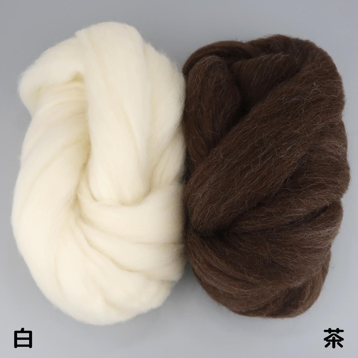 繊維の細さは白27〜28μ、茶28μ。少し生成りっぽい白と茶の天然色2色です。