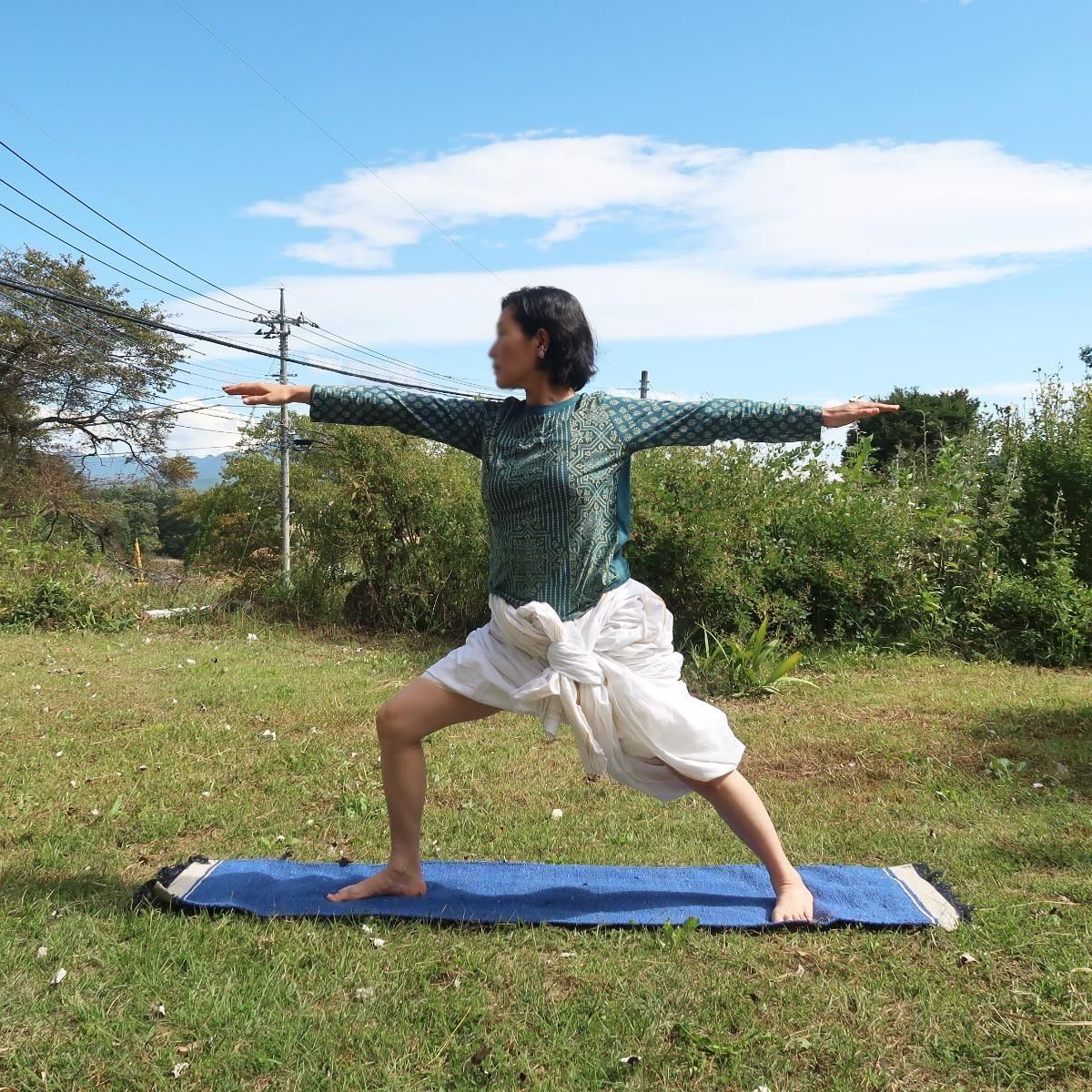 カディのヨガマット。幅が狭いですが、身長160cm位の女性がヨガをするには肩幅が収まって丁度良いそうです!肩幅にジャストフィットする方におすすめです。