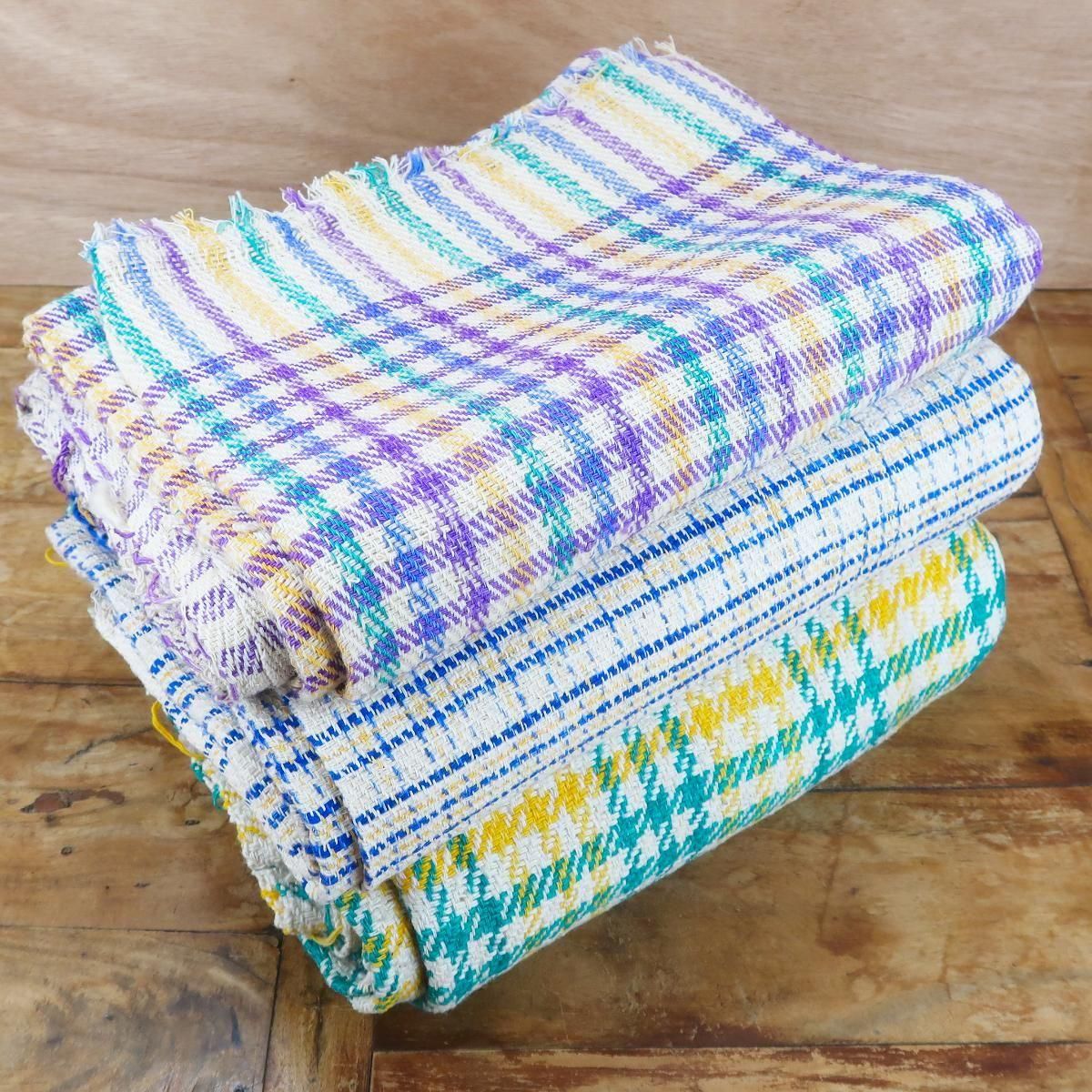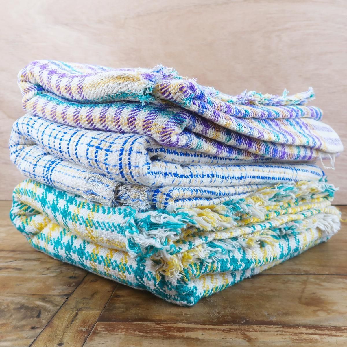 インド綿で作られたチェック柄のマルチカバー。紫、青黄、緑黄の3色です。緑黄は少し厚めな手触り。綾の織り目とチェック柄が良い感じに組み合わさっています。洗う度に柔らかい風合いに変化していきますので、綿の心地よい肌触りが楽しめます。