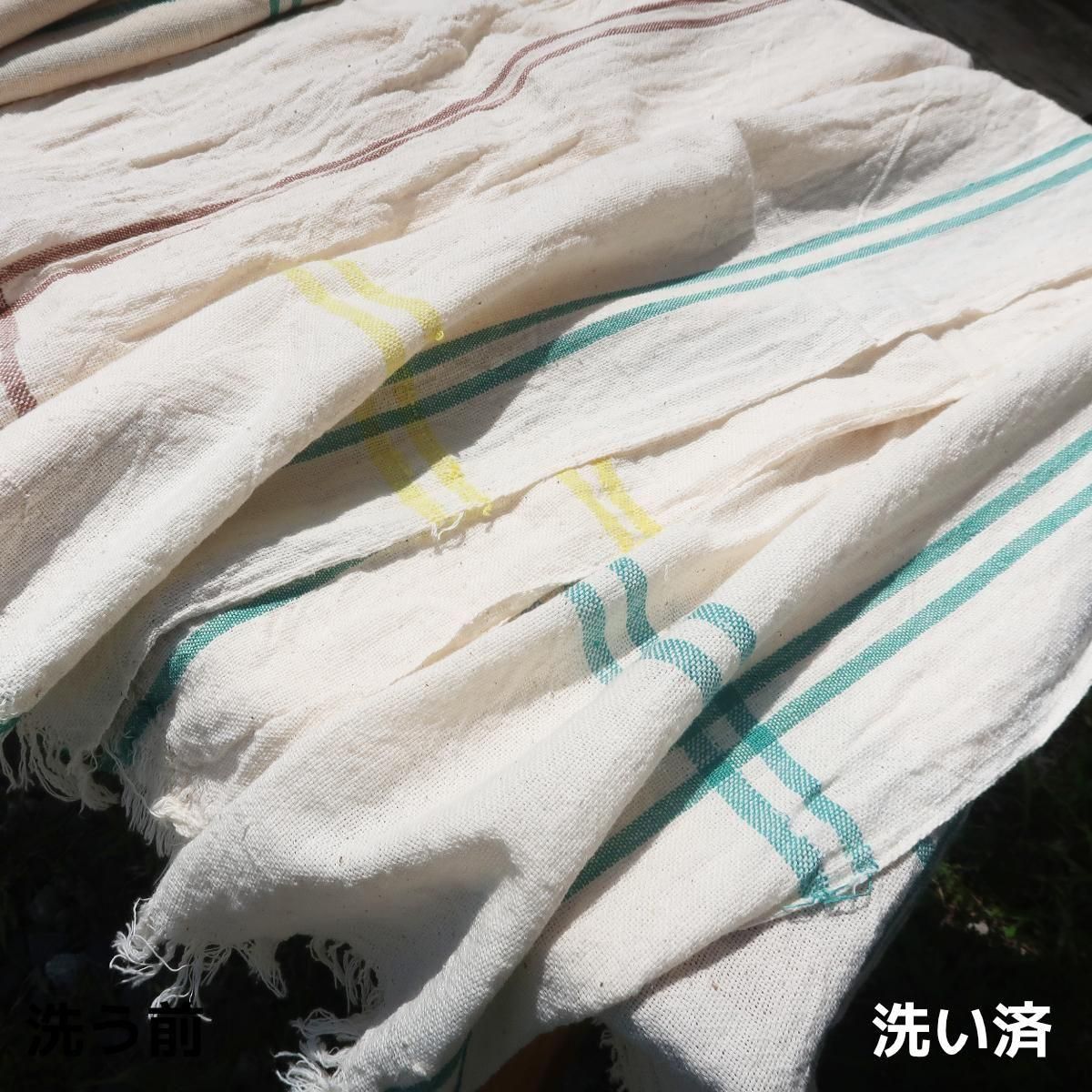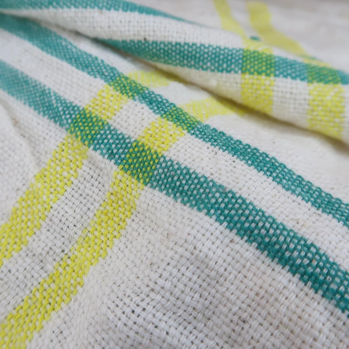 インドのカディタオル格子。平織りの生地、洗うたびに柔らかくなります。端は切りっぱなしです。サイズ:約75×180cm。