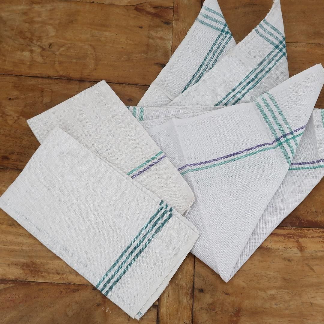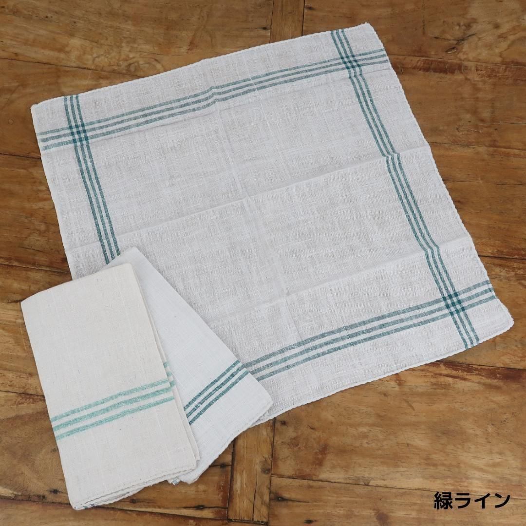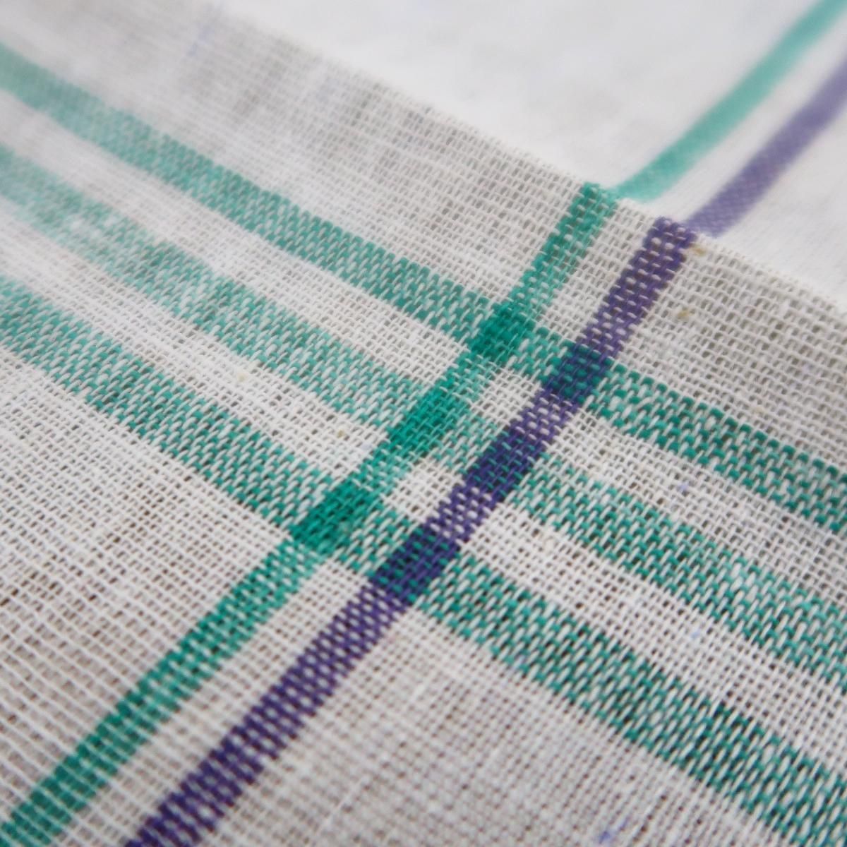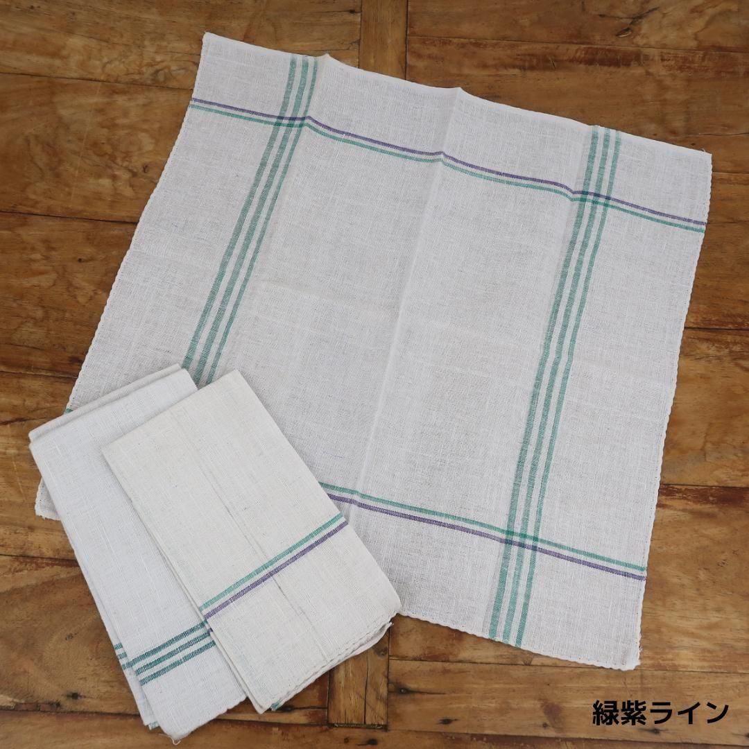 インドのカディハンカチ、ライン入り。緑ラインと緑×紫ラインの2色。薄手で吸水性抜群、洗う度に柔らかくなり使い心地がとても良くておすすめです。生地の端はミシンで始末してあります。大きさには個体差があります。