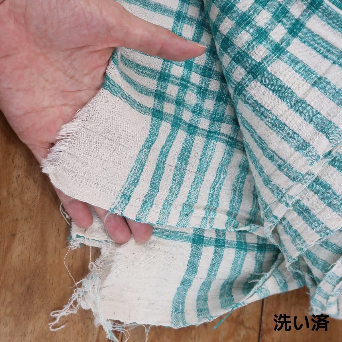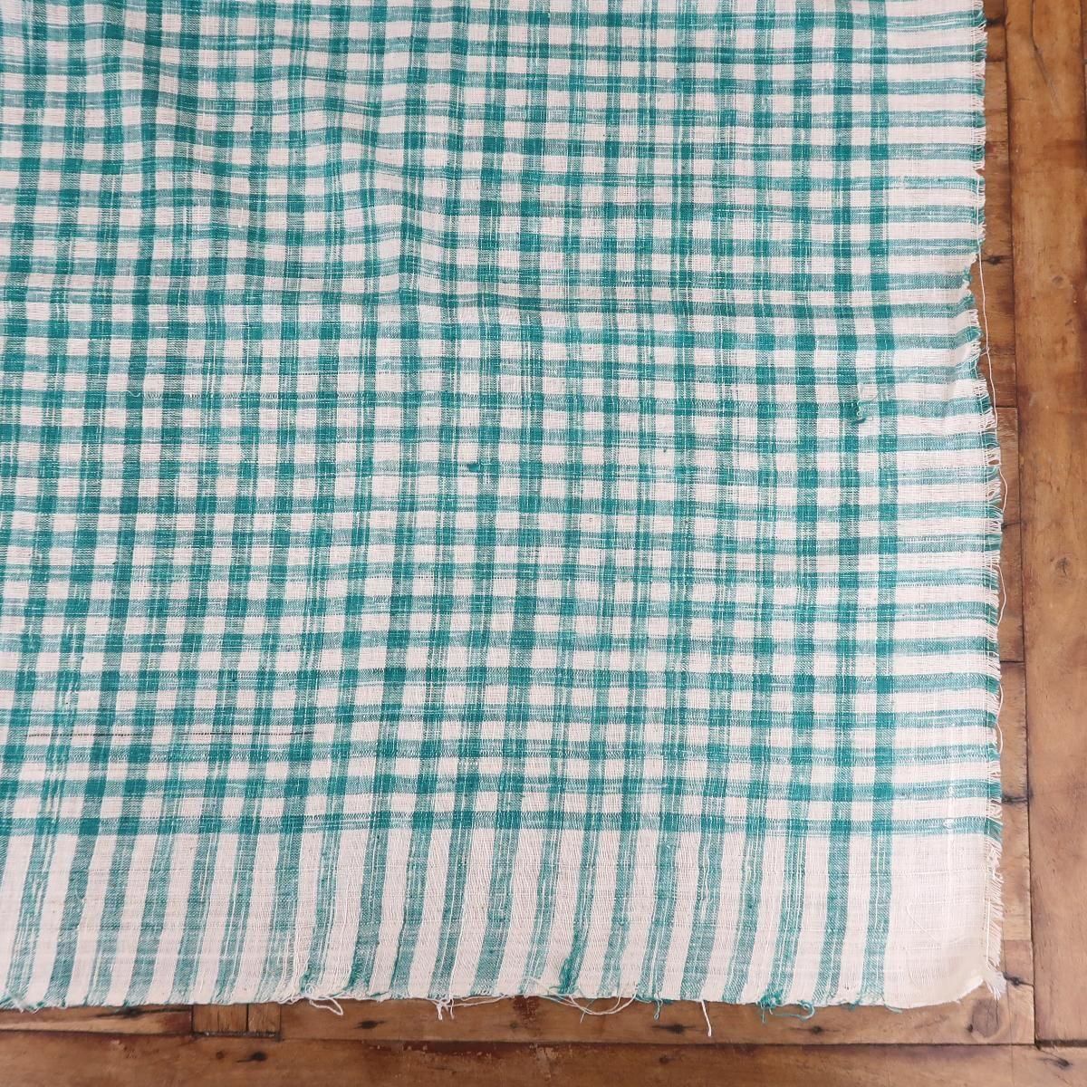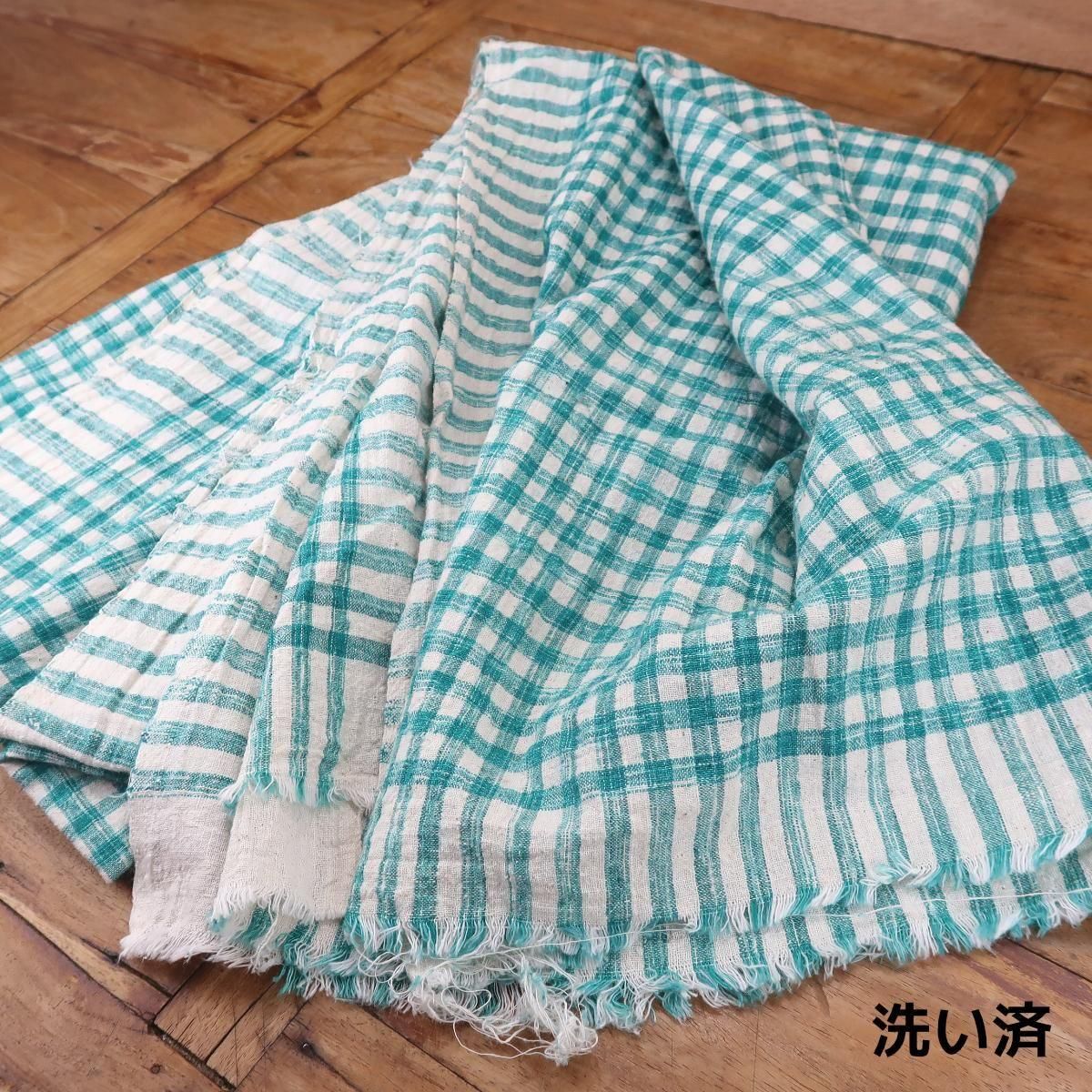 インド綿で作られた薄手のマルチカバー、緑チェック柄。洗う度に柔らかい風合いに変化していきますので、綿の心地よい肌触りが楽しめます。