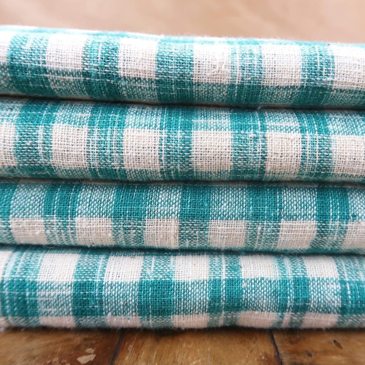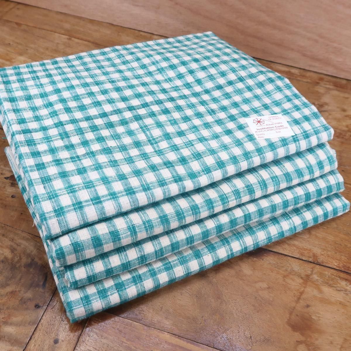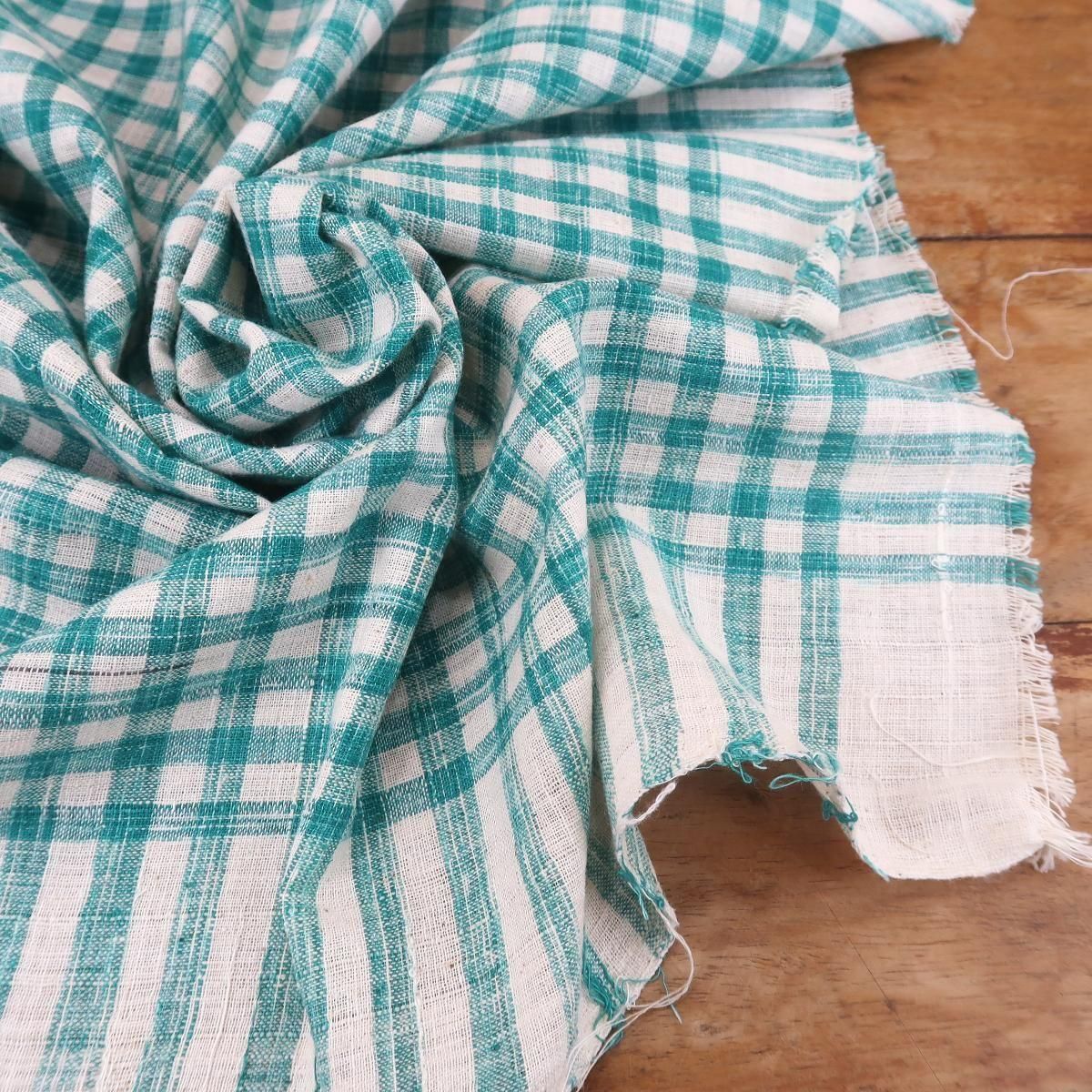 インド綿で作られた薄手のマルチカバー、緑チェック柄。洗う度に柔らかい風合いに変化していきますので、綿の心地よい肌触りが楽しめます。