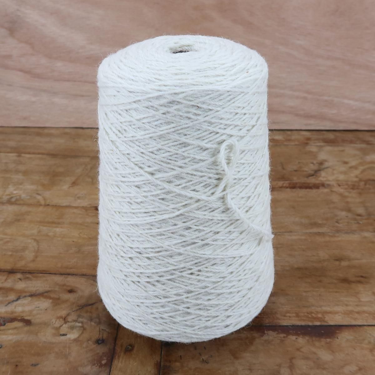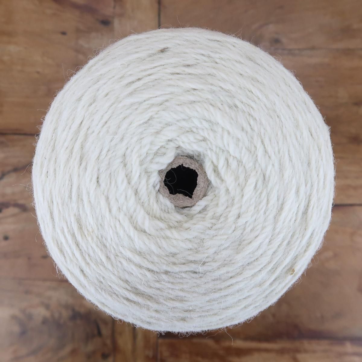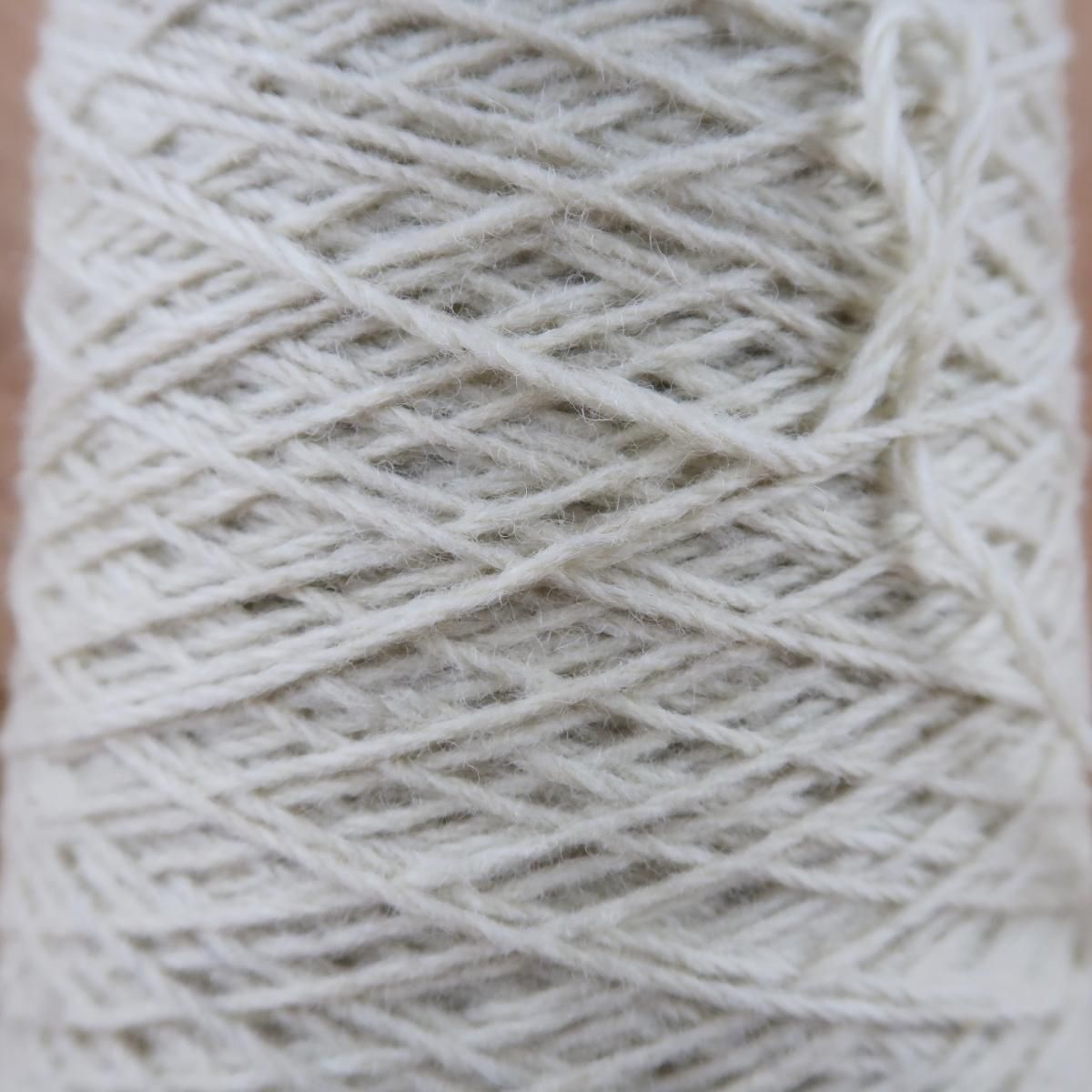 ウール100%、3本撚りのクラフトヤーン。カーペット工場からの残糸、少しボソッとした固めの伸びにくい糸。フリースマットの経糸などにおすすめです。真っ白ではなく生成っぽい白で、クラフトヤーンカラーと比べて少し太め。編み、織り、様々な用途にどうぞ。 番手3/4Nm Wool100%
